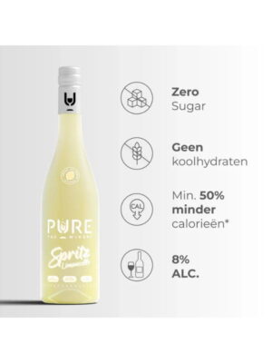 PURE Zero Sugar Spritz bevat 50% minder calorieën dan de traditionele Spritz, die suiker, koolhydraten en een alcoholpercentage van 9% of meer bevat.